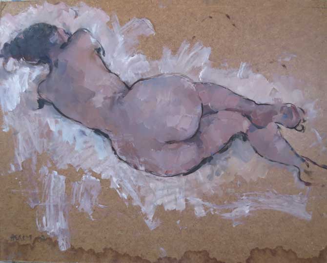 Reclining nude f, 2009, 40 x 50 cm, oil on board, 650,-€