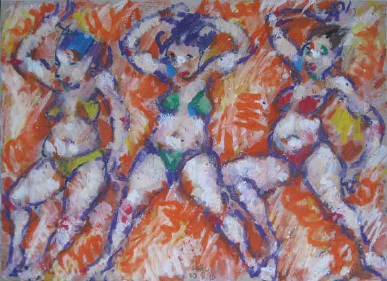 3 bathers II, 2010, 21 x 30 cm, oil-pastel on board, 350,-€