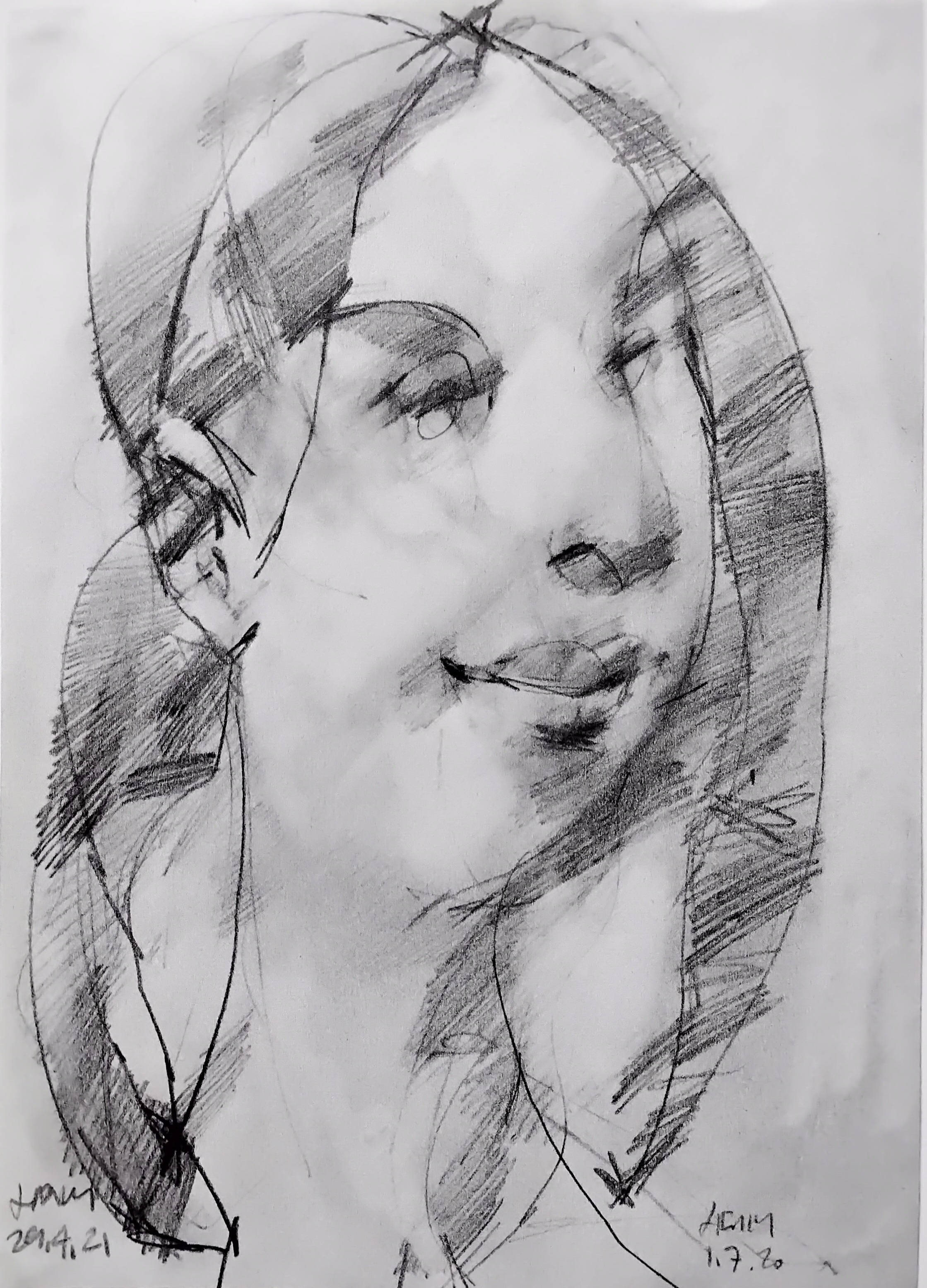 Gesicht I, 2020-21, 30 x 21 cm, Bleistift und Radierer auf Papier, 250,-€