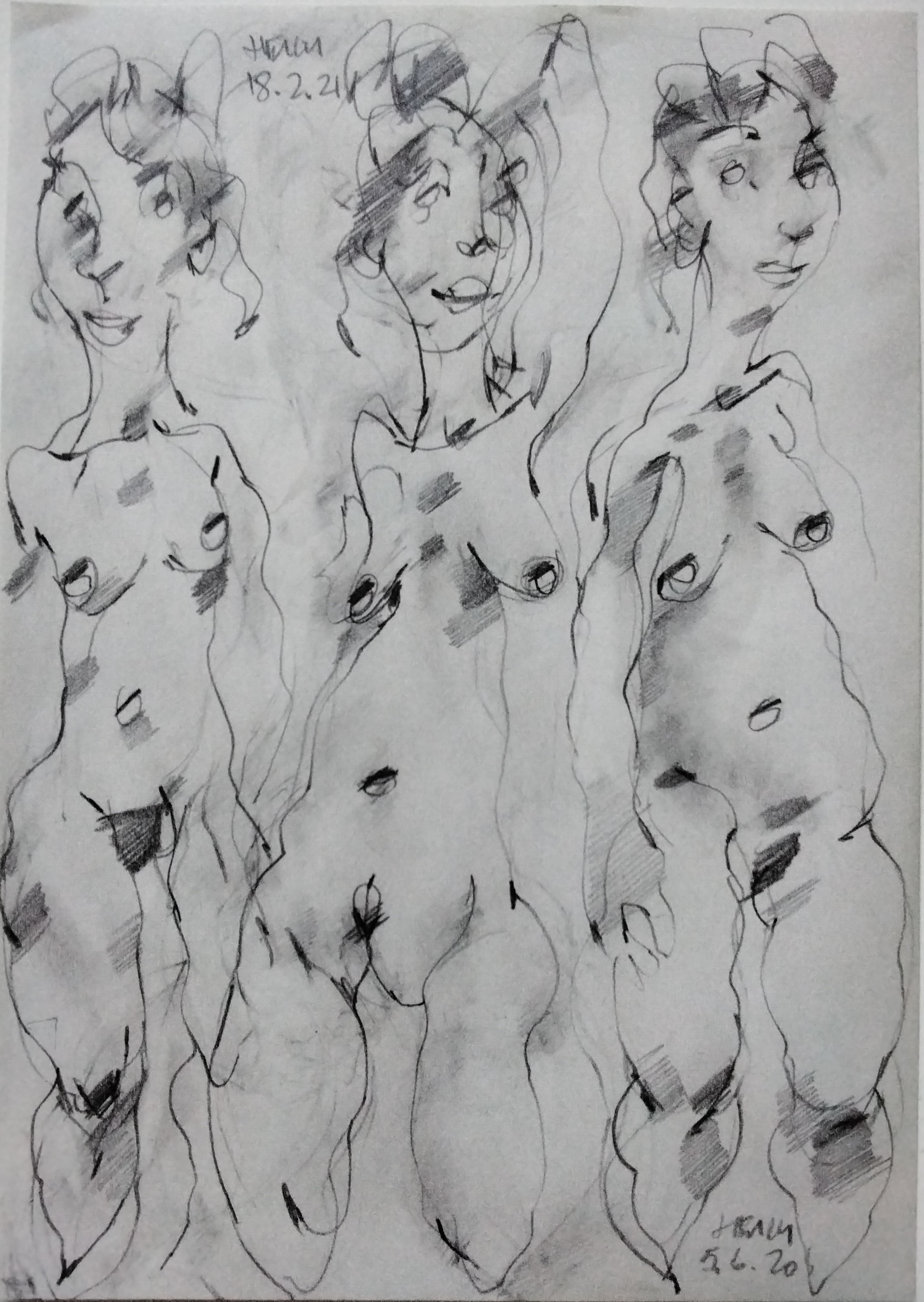 3 Akte I, 2020-21, 30 x 21 cm, Bleistift und Radierer auf Papier, 200,-€