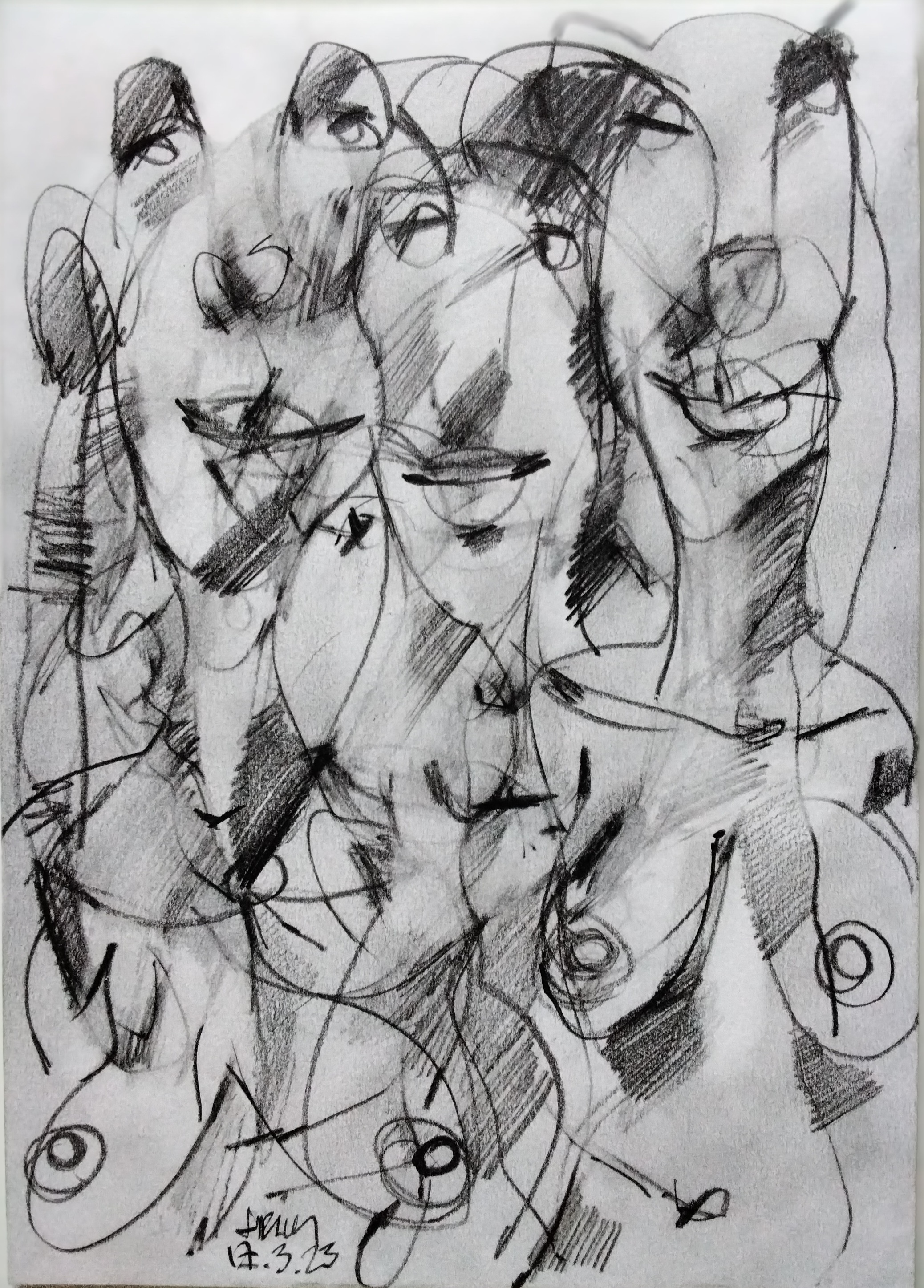 Gesichte IV, 2023, 30 x 21 cm, Bleistift und Radierer auf Papier, 300,-€