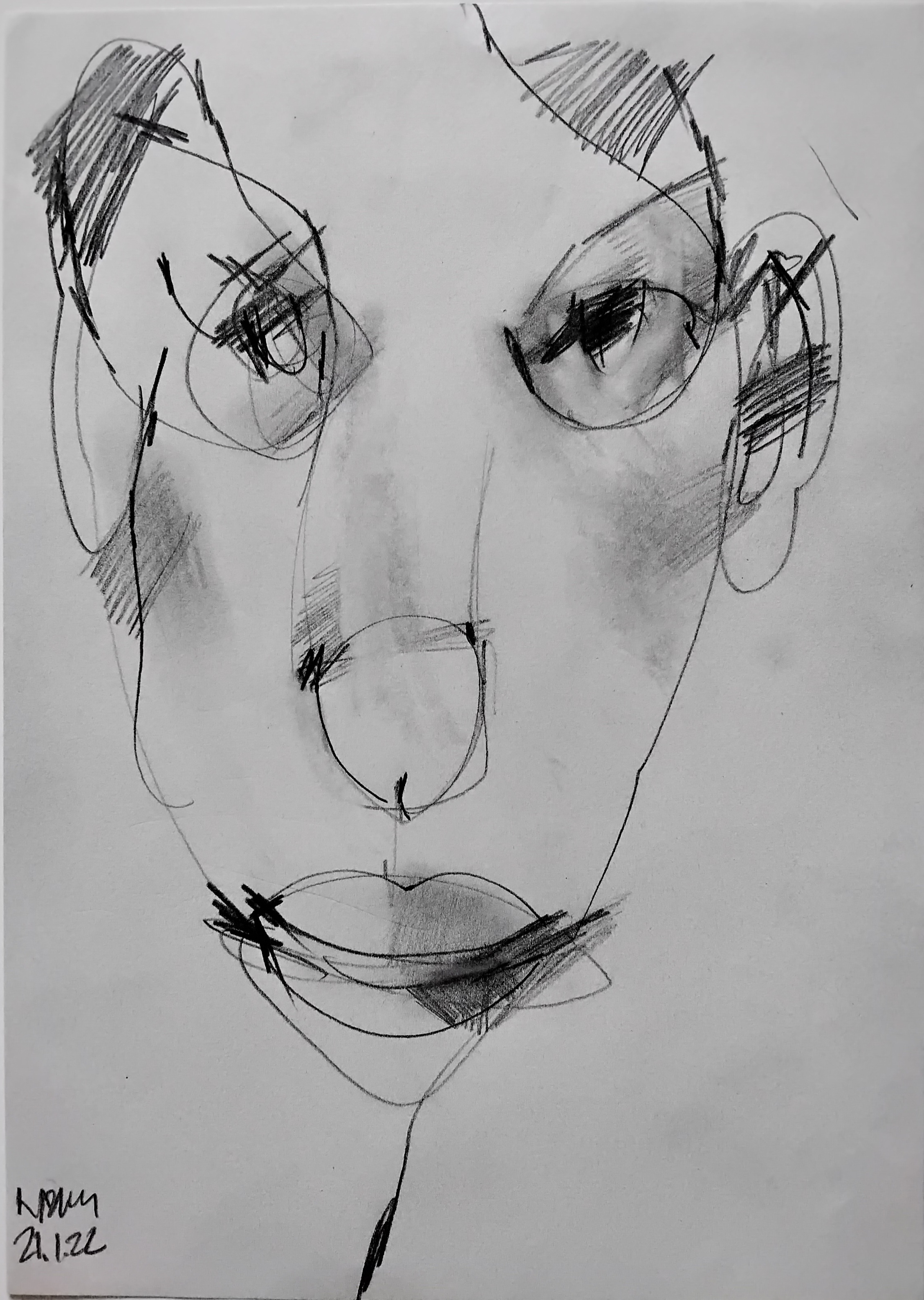 Gesicht V, 2022, 30 x 21 cm, Bleistift und Radierer auf Papier, 300,-€