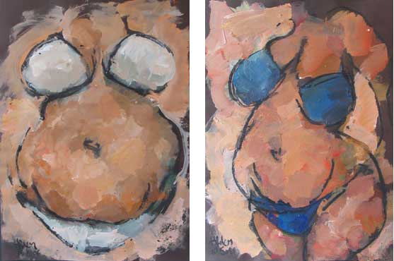 Torso 1 und 2, 2005, 70 x 50 cm, Öl und Kohle auf Karton, je 750,-€