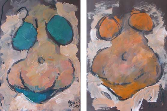 Torso 3 und 4, 2005, 70 x 50 cm, Öl und Kohle auf Karton, je 750,-€