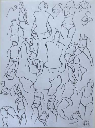 Am Strand m, 91, 30 x 21 cm, Feder auf Papier, 100,-€