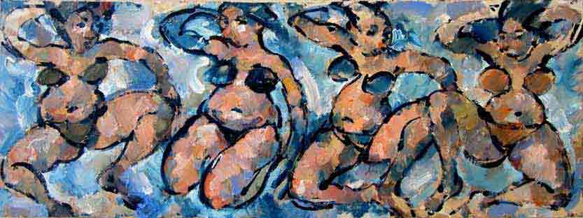 4 bathers, 2011, 22 x 62 cm, oil on board