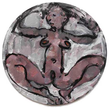 Akt e, 2012, Ø 25 cm, Öl auf Tiefkuhlpizzs Styropor, 450,-€,