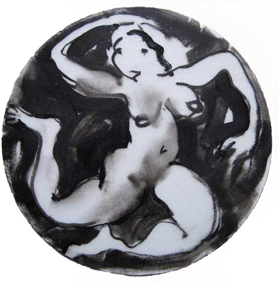 Akt m, 2012, Ø 25 cm, Öl auf Tiefkuhlpizzs Styropor, 450,-€,