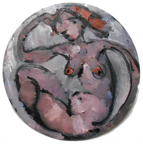 Akt p, 2012, Ø 25 cm, Öl auf Tiefkuhlpizzs Styropor, 450,-€,