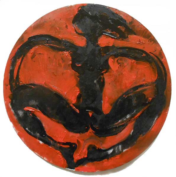 Akt x, 2012, Ø 25 cm, Öl auf Tiefkuhlpizzs Styropor, 450,-€,