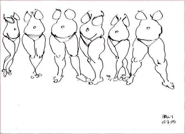 Bikini Reihe, 2005, 21 x 30 cm, Feder auf Papier, 150,-€